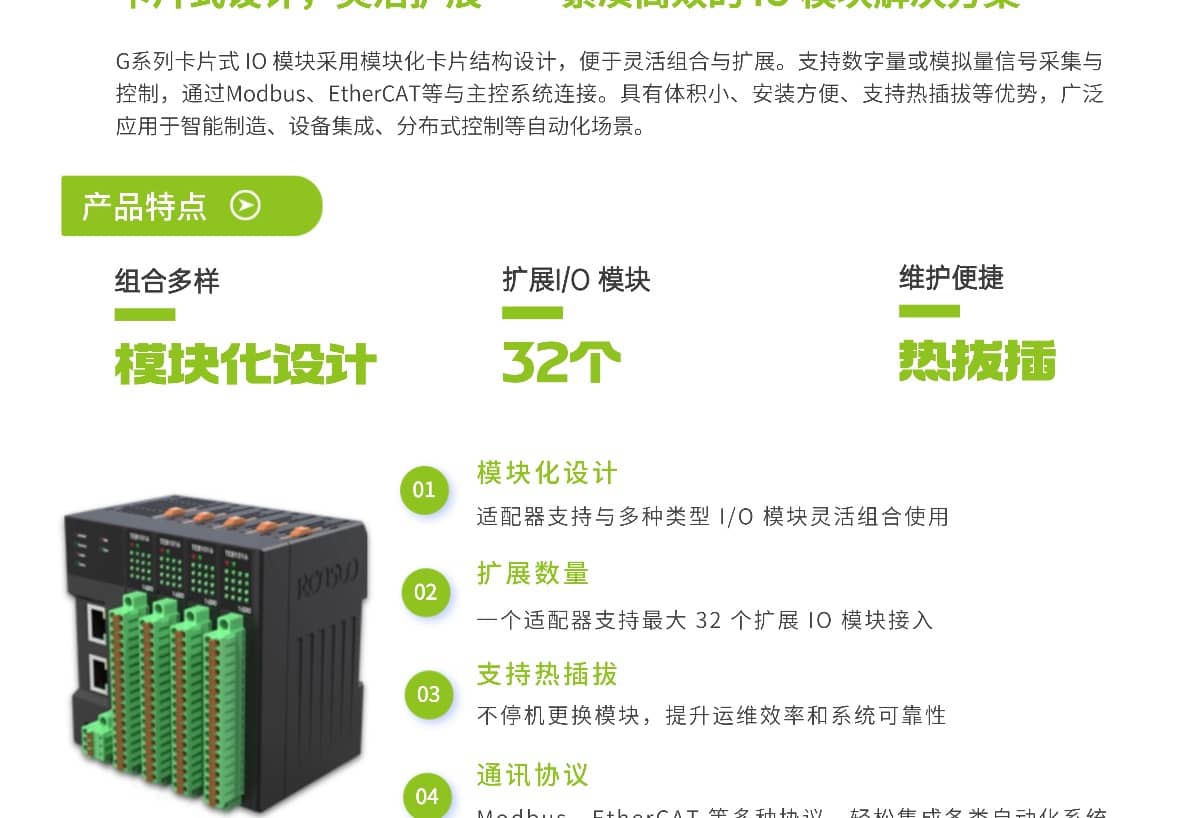 ⚫ 一个适配器支持最大 32 个扩展 IO 模块接入