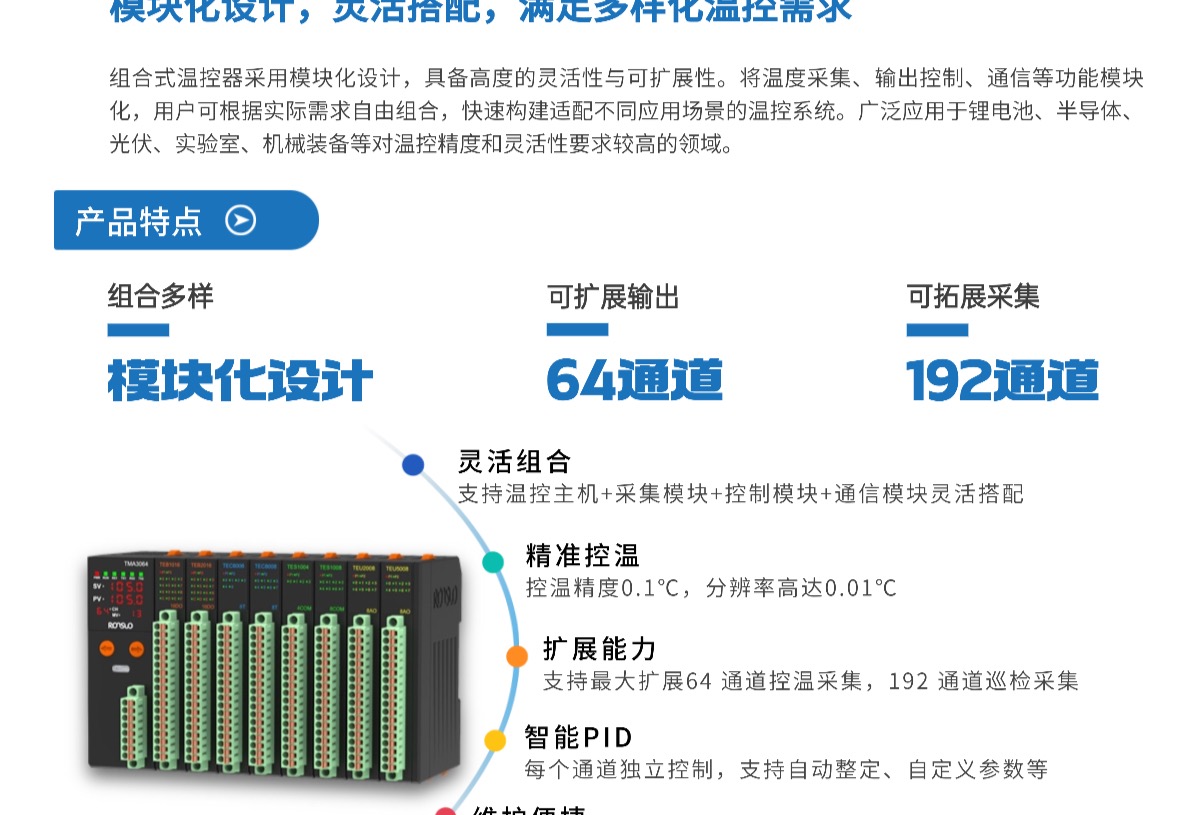 蓝卫士温控 TMA系列 组合式温控设备 储能温控系统 电芯测试温控 PACK模组测试温控 多通道温控平台 高精度温控器 工业级温控器 温度采集模块 电池测试控温 储能设备热管理 温控解决方案 电池老化测试温控 储能PACK测试系统 储能柜体温控 模块化温控系统 PT100 温控模块 CAN / 485 通信温控设备 温控 + 热管理系统
