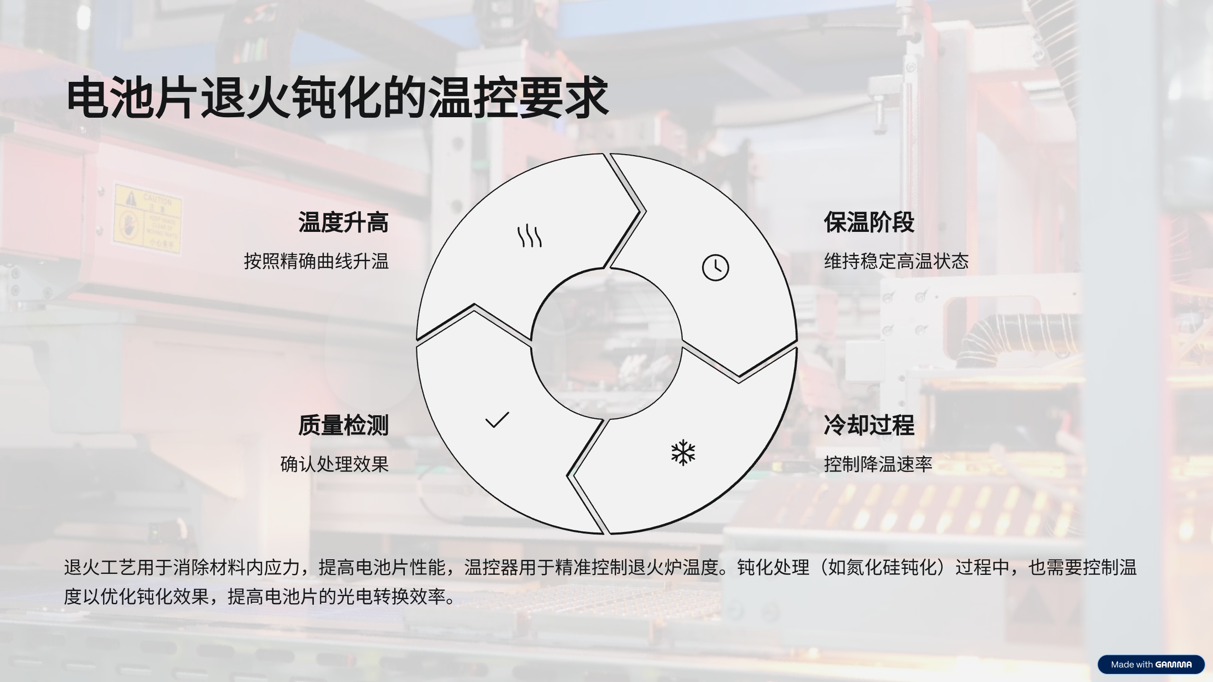 673 Blue Guardian temperature controllers are crucial in the photovoltaic module production process, involving silicon wafer manufacturing, cell production, packaging processes, and testing.